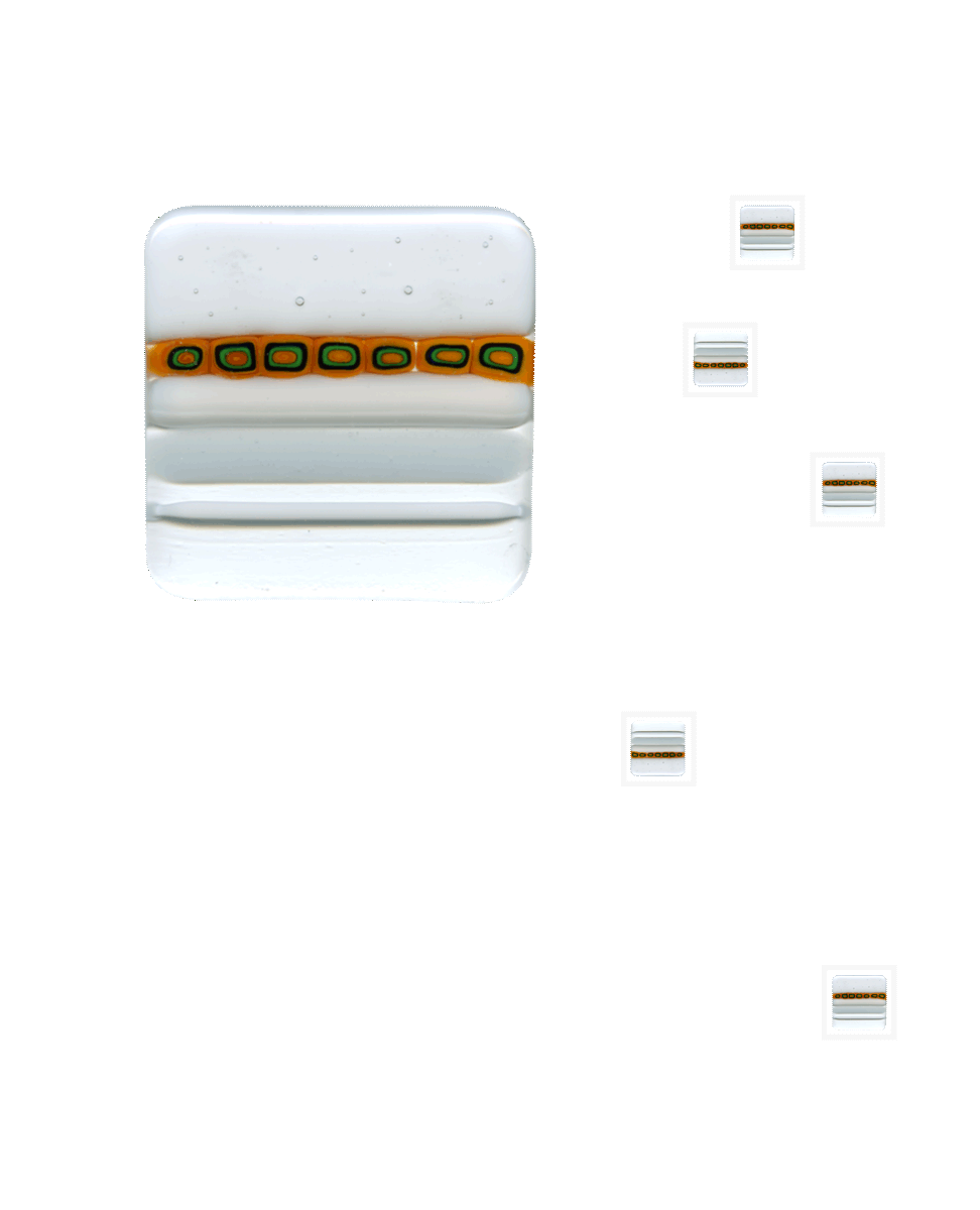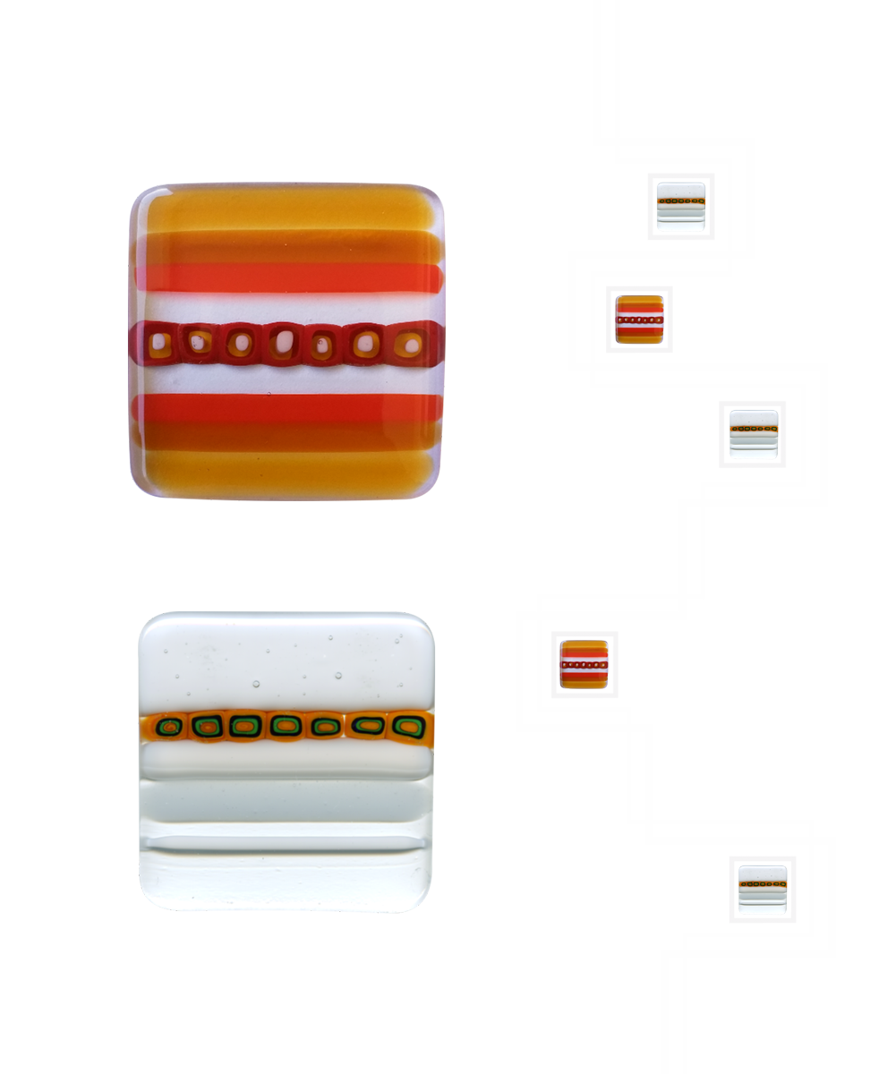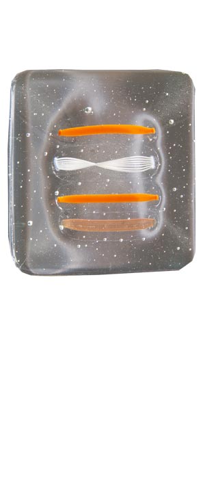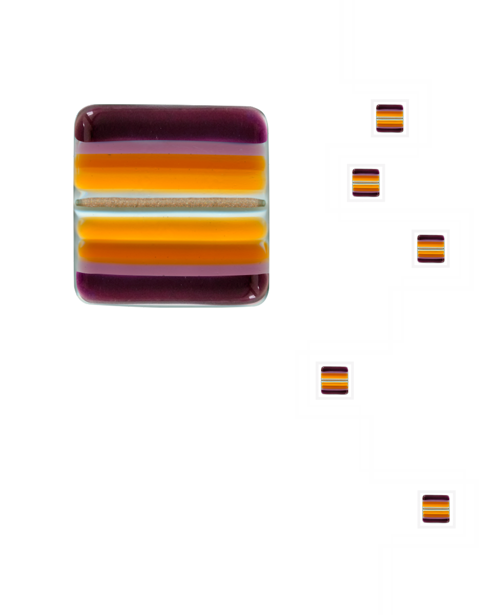 Vetro satinato con decoro sabbiato e applicazione di n. 5 murrine quadrate di Murano