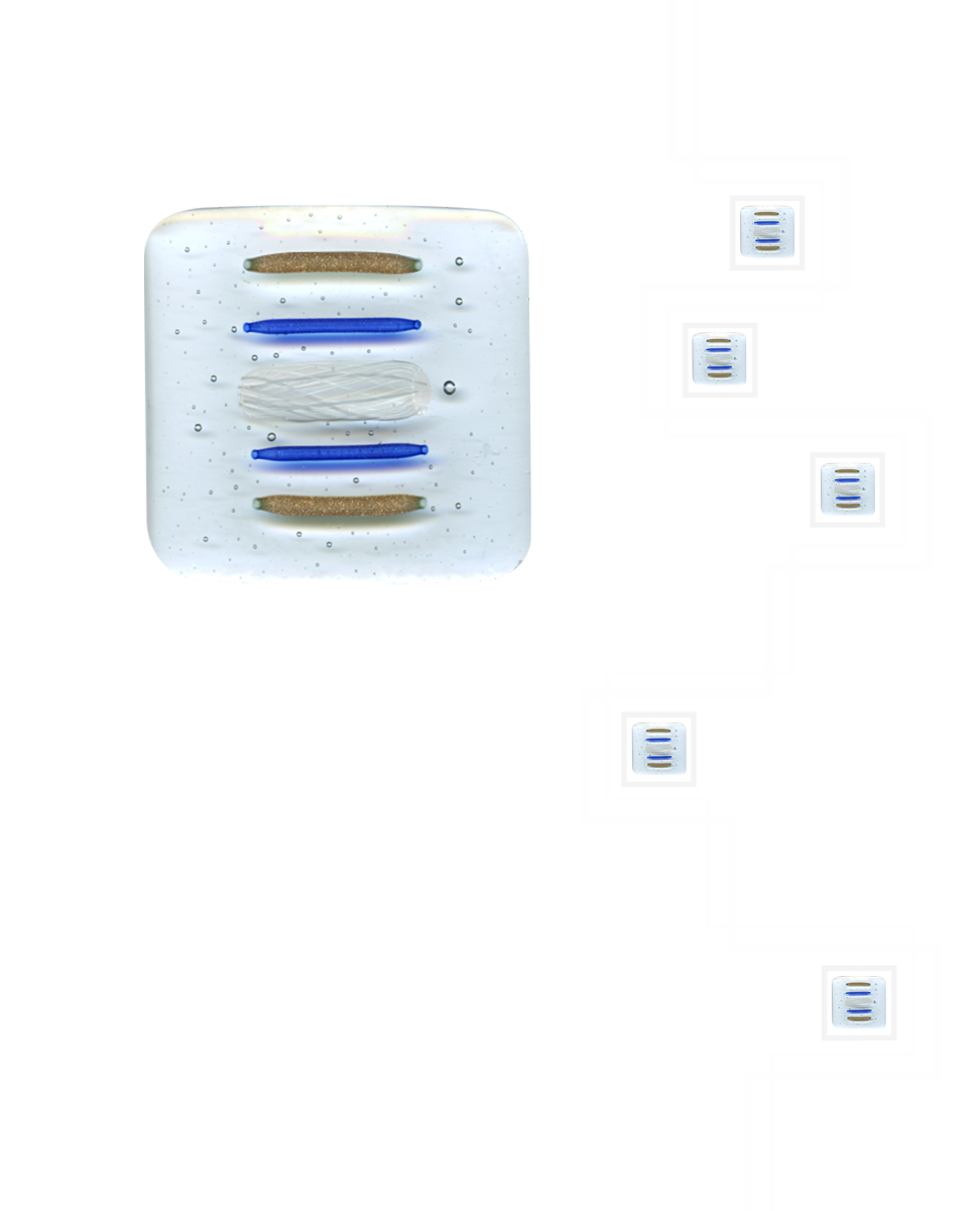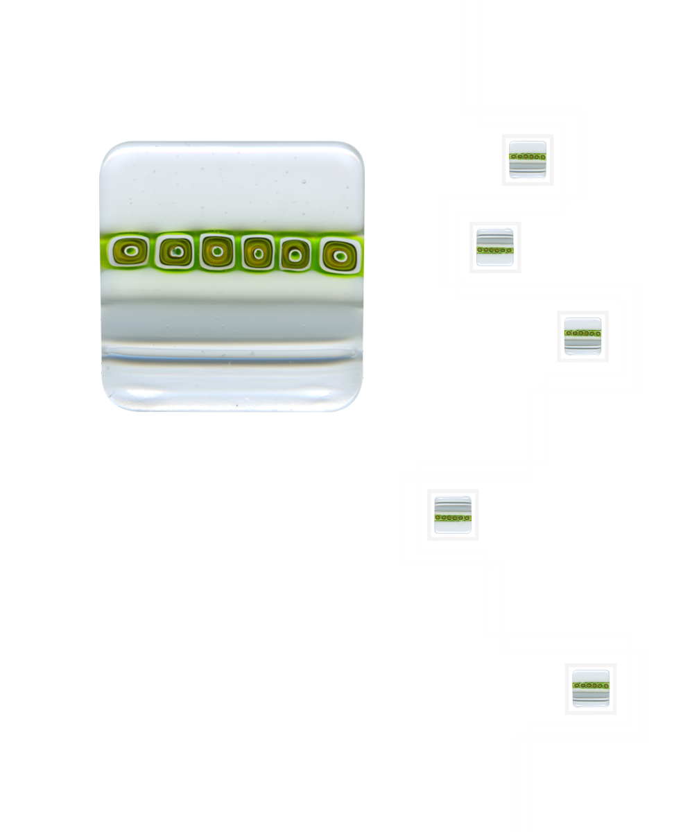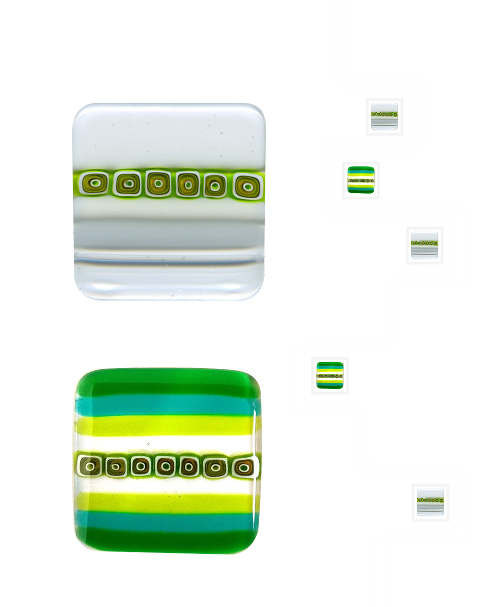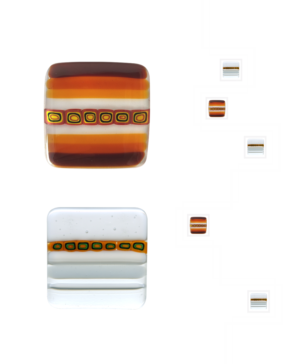 Le murrine o millefiori sono delle piccole gemme in vetro trasparente o in pasta opaca dai svariati colori e disegni . Vengono fabbricate sin dall’antichità nelle fornaci di Murano, un’ isola della laguna di Venezia. Lavorate al lume da un Maestro vetrario si ottengono dalle bacchette le gemme rotonde che fuse tra loro danno origine a svariati tipi di formelle che vengono applicate a vetri acidati o float trasparenti.
