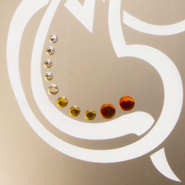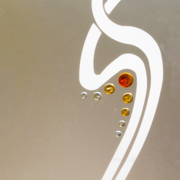Sul lato opaco del vetro, vengono relizzati degli incavi con una profondità circa di 2/3 mm. In secondo momento vengono riempiti manualmente con degli appositi colori per vetro e messi in formo per l'essiccatura e l'indurimento.