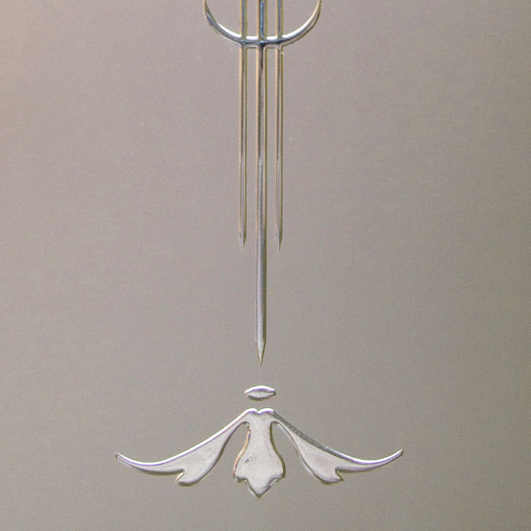Vetro satinato con decoro inciso e colorato in trasparenza.