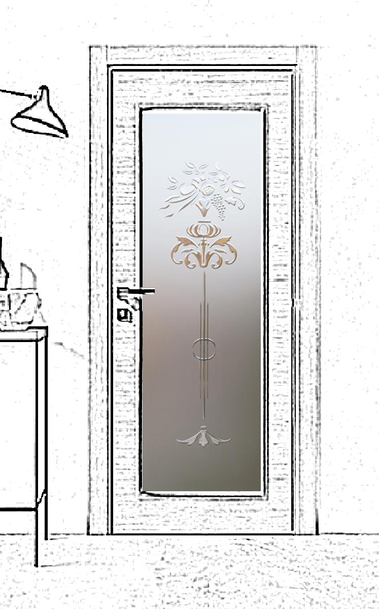 Con un decoro molto classico, il vetro sabbiato con decoro Fruit dona eleganza alle tue porte in legno.