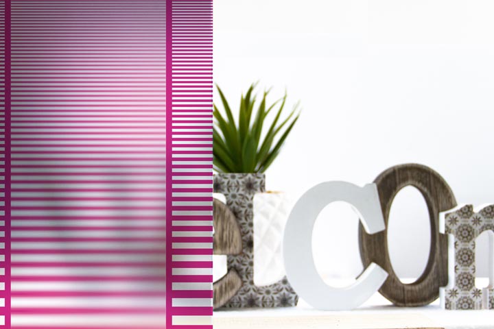 Con un decoro stampato direttamente sul vetro con tema astratto, il vetro con stampa digitale Allie dona colore e privacy ai vostri ambienti.