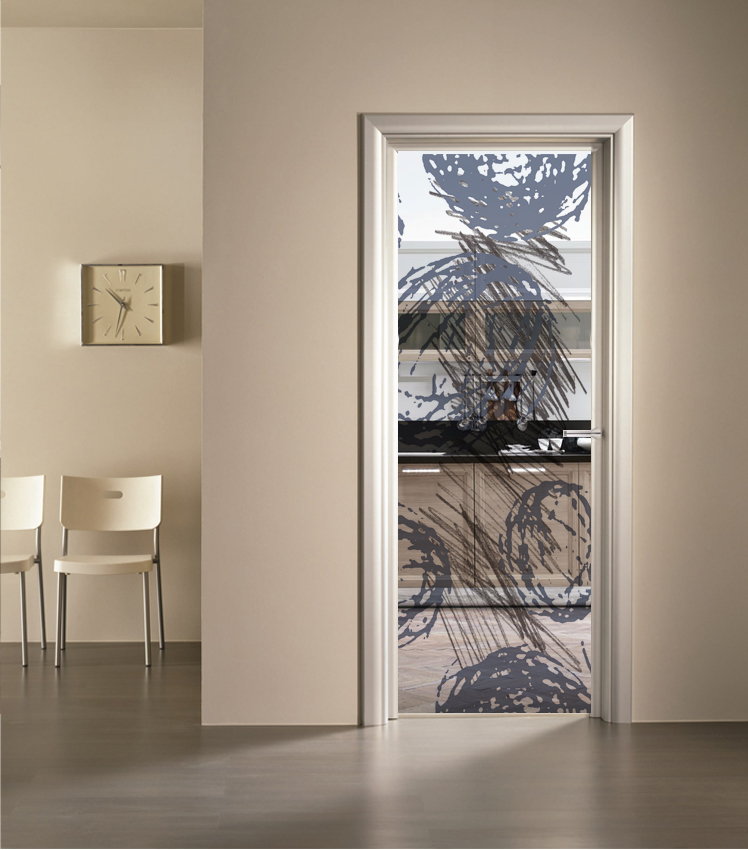 Ideato per porte in legno classiche con uno spessore standard da 6mm, il vetro con decoro Ardisia viene realizzato sia su vetro con base satinata sia su vetro con base trasparente e con diversi spessori a seconda delle proprie esigenze.