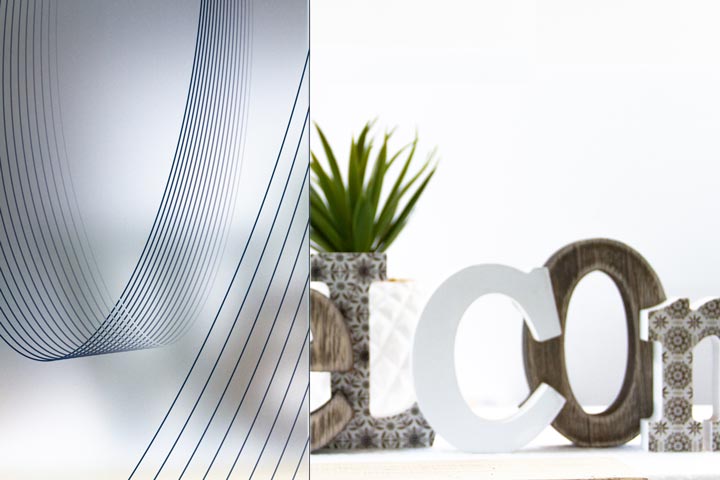Con un decoro stampato direttamente sul vetro con tema astratto, il vetro con stampa digitale Celeste dona colore e privacy ai vostri ambienti.