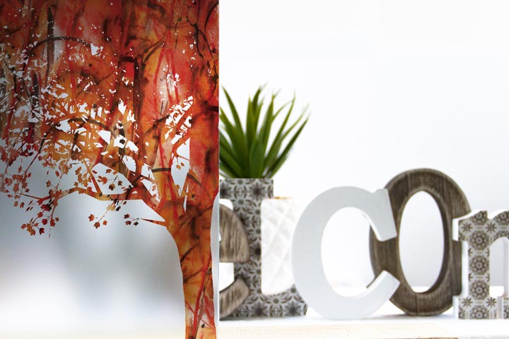 Con un decoro stampato direttamente sul vetro con tema primaverile, il vetro con stampa digitale Cheril dona colore e privacy ai vostri ambienti.