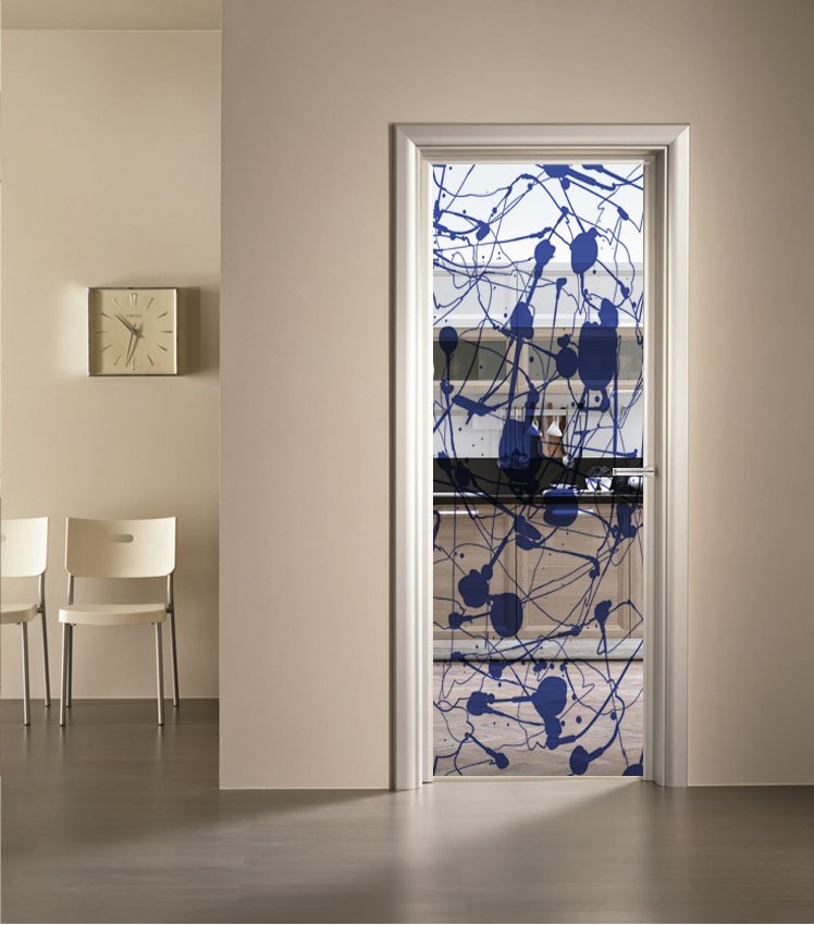 Ideato per porte in legno classiche con uno spessore standard da 6mm, il vetro con decoro Cloe viene realizzato sia su vetro con base satinata sia su vetro con base trasparente e con diversi spessori a seconda delle proprie esigenze.
