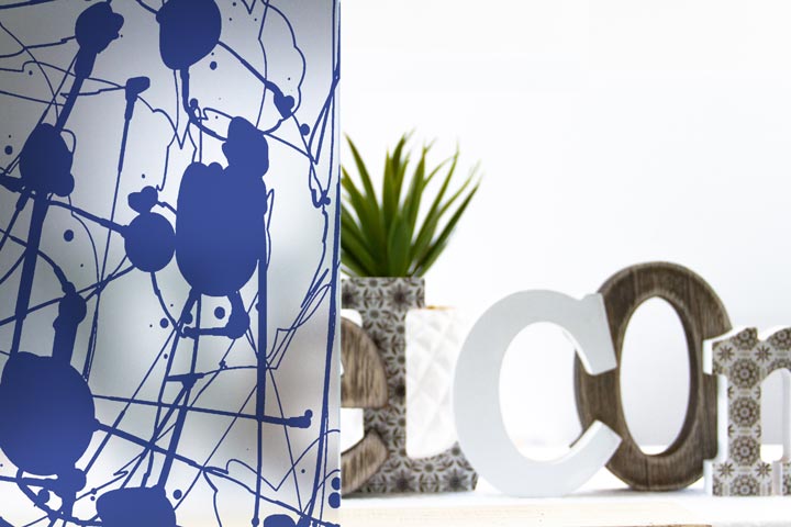 Con un decoro stampato direttamente sul vetro con tema astratto, il vetro con stampa digitale Cloe dona colore e privacy ai vostri ambienti.