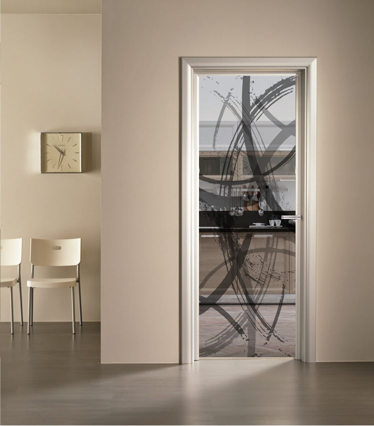 Ideato per porte in legno classiche con uno spessore standard da 6mm, il vetro con decoro Concordia viene realizzato sia su vetro con base satinata sia su vetro con base trasparente e con diversi spessori a seconda delle proprie esigenze.