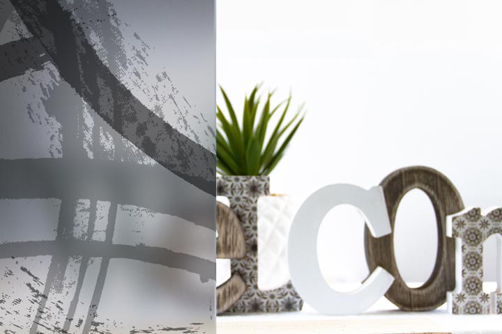 Con un decoro stampato direttamente sul vetro con tema astratto, il vetro con stampa digitale Concordia dona colore e privacy ai vostri ambienti.