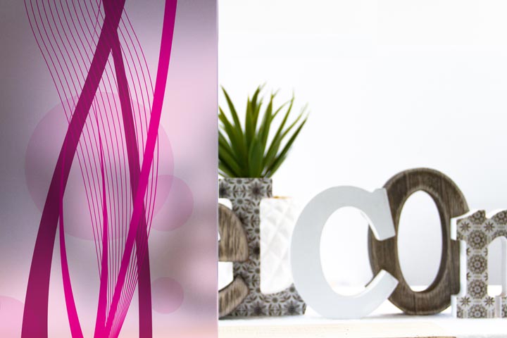 Con un decoro stampato direttamente sul vetro con tema astratto, il vetro con stampa digitale Glenda dona colore e privacy ai vostri ambienti.