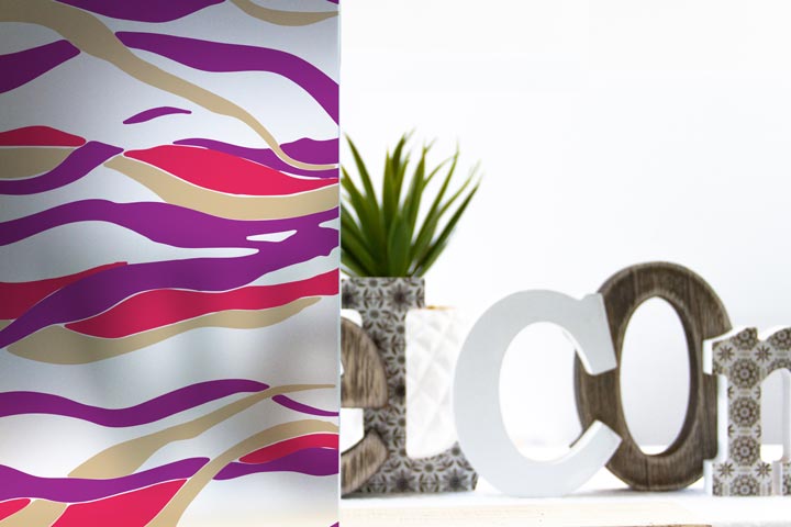 Con un decoro stampato direttamente sul vetro con tema astratto, il vetro con stampa digitale Lavinia dona colore e privacy ai vostri ambienti.