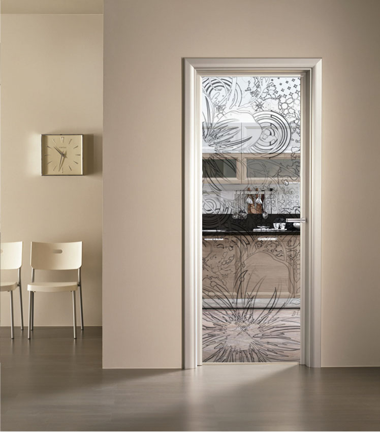 Ideato per porte in legno classiche con uno spessore standard da 6mm, il vetro con decoro Lea viene realizzato sia su vetro con base satinata sia su vetro con base trasparente e con diversi spessori a seconda delle proprie esigenze.