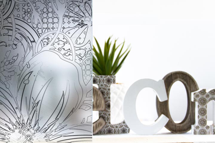 Con un decoro stampato direttamente sul vetro con tema floreale, il vetro con stampa digitale Lea dona colore e privacy ai vostri ambienti.