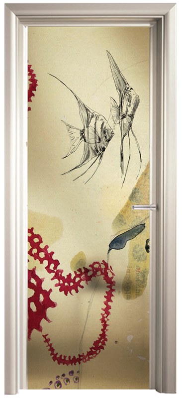 Con un decoro stampato direttamente sul vetro con tema marino, il vetro con stampa digitale Leila dona colore e privacy ai vostri ambienti.