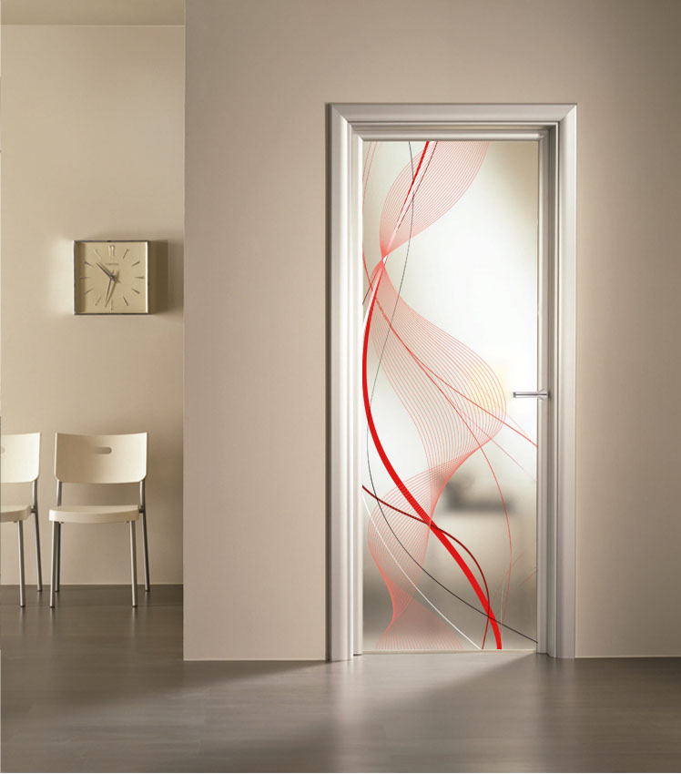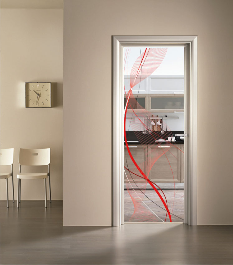 Ideato per porte in legno classiche con uno spessore standard da 6mm, il vetro con decoro Thelma viene realizzato sia su vetro con base satinata sia su vetro con base trasparente e con diversi spessori a seconda delle proprie esigenze.