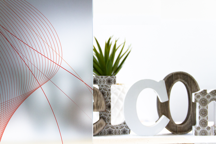 Con un decoro stampato direttamente sul vetro con tema astratto, il vetro con stampa digitale Thelma dona colore e privacy ai vostri ambienti.