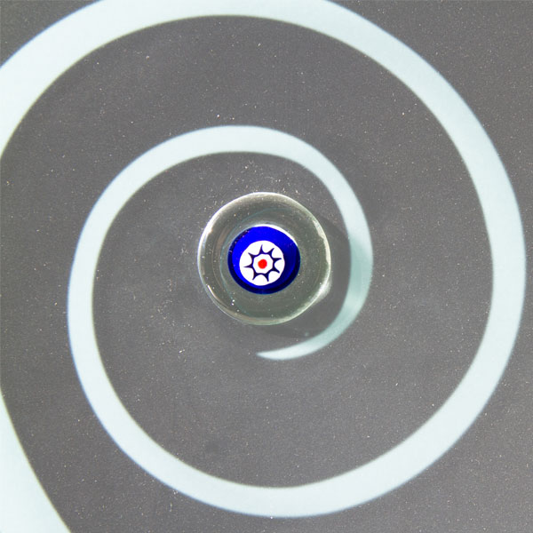 Vetro satinato con decoro sabbiato e applicazione di n. 25 murrine tonde di Murano