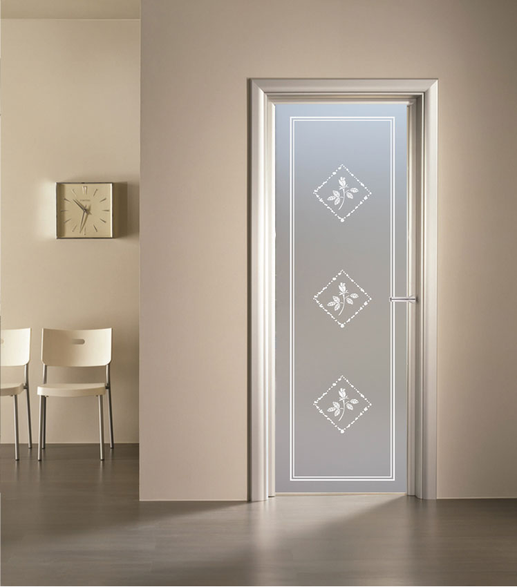 Vetro satinato con decoro sabbiato
