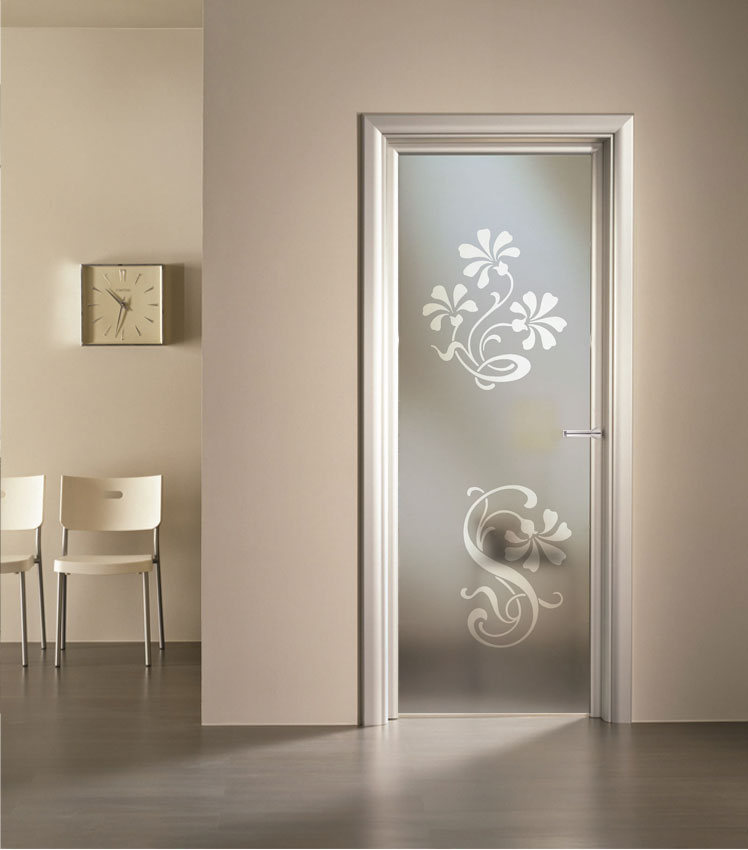 Vetro satinato con decoro sabbiato