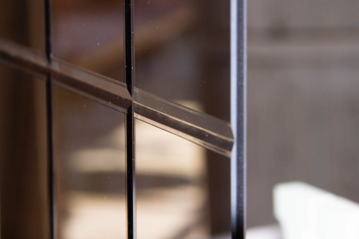 Smussatura decorativa del bordo dello specchio che crea un elegante effetto riflettente.